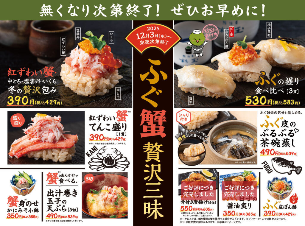12月3日(水)より期間限定メニュー登場!『ふぐ蟹贅沢三昧』※終了しました